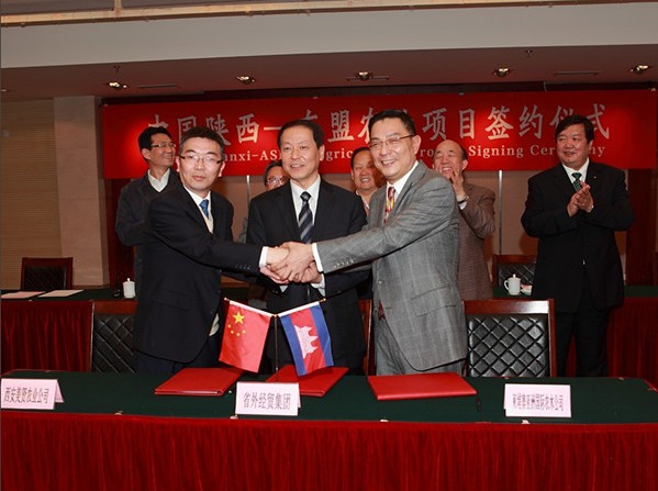 本次簽約以“互利合作,攜手發(fā)展”為主題。簽約項目結(jié)合柬埔寨振興國家農(nóng)業(yè)規(guī)劃,按照熱帶經(jīng)濟作物種植園的專業(yè)化產(chǎn)業(yè)技術(shù)要求,對柬埔寨國內(nèi)三萬公頃原始森林進(jìn)行全面改造。將其建成規(guī)?;?、標(biāo)準(zhǔn)化、產(chǎn)業(yè)化的天然橡膠園、棕櫚園、木薯種植基地及其他經(jīng)濟作物園林,并在此基礎(chǔ)上,開展農(nóng)產(chǎn)品品種選育、進(jìn)出口、技術(shù)引進(jìn)等方面交流合作,特別是將陜西省楊凌農(nóng)業(yè)高科技產(chǎn)業(yè)示范區(qū)的農(nóng)業(yè)高科技成果引入包括柬埔寨在內(nèi)的東南亞各國,積極促成陜西-東盟農(nóng)業(yè)高科技基地的建設(shè),力求最終在柬埔寨國內(nèi)建設(shè)和運營具有示范意義的新型森林資源改造和農(nóng)業(yè)開發(fā)項目。該項的實施,將成為陜西省乃至西北省份最大的農(nóng)業(yè)合作項目。同時,本項目也將整合項目所在地的優(yōu)勢旅游資源,開發(fā)具有熱帶風(fēng)情的森林及農(nóng)業(yè)特色旅游線路。積極引領(lǐng)陜西企業(yè)大步“走出去”。