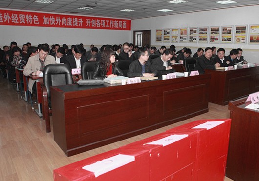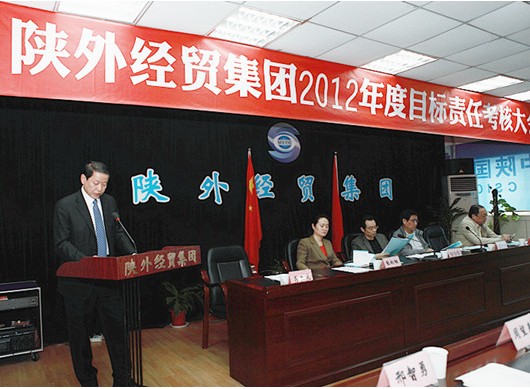 會議由考核組副組長、國資委副主任秦民生主持,國資委副書記何少華在會上作了動員講話,集團董事長肖玉龍代表外經(jīng)貿(mào)集團作了述職報告。