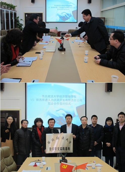 易通公司總經(jīng)理張少華、副總經(jīng)理艾斌、招聘培訓(xùn)部部長閆杰等一行6人,于2013年1月7日前往西北政法大學(xué)南校區(qū)與該校經(jīng)濟管理學(xué)院,就簽訂校企合作協(xié)議進行溝通。西北政法大學(xué)經(jīng)濟管理學(xué)院劉院長、王副院長、趙副院長、學(xué)院輔導(dǎo)員王老師等5人出席了本次校企合作協(xié)議簽訂儀式。