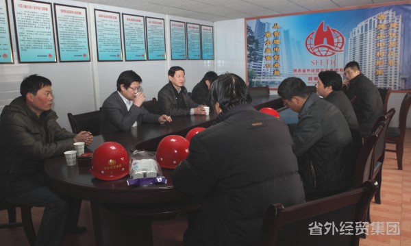 集團(tuán)公司董事長肖玉龍聽取各項(xiàng)目部經(jīng)理匯報(bào)工程進(jìn)度