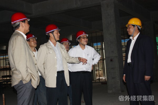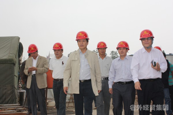 集團(tuán)公司董事長(zhǎng)肖玉龍(左三)在工程施工現(xiàn)場(chǎng)檢查安全