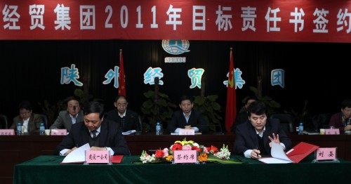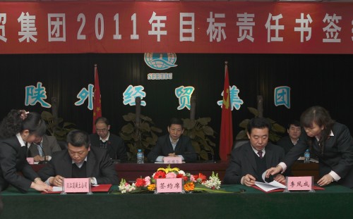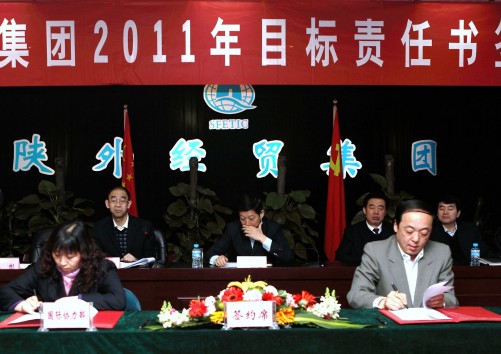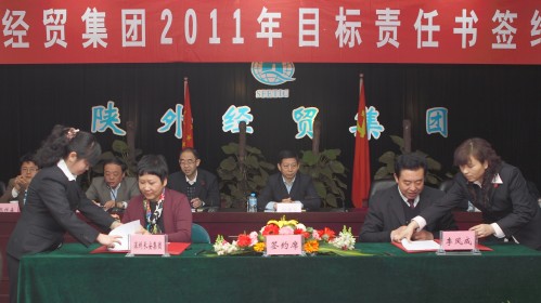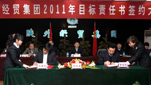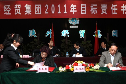 3月17日上午我集團在五樓會議室召開2011年目標責任書簽約大會。會議由集團公司副總經(jīng)理曹振德主持、副總經(jīng)理趙彬宣布2010年度經(jīng)營目標完成兌現(xiàn)情況,集團公司所屬20多個經(jīng)營單位與分管領導簽訂了經(jīng)營、管理、黨風廉政目標責任書。由此,使集團公司2011年完成銷售收入26億元的預期目標任務分解落實,責任到位。為全面完成“十二五”規(guī)劃良好開局奠定了堅實的基礎。集團公司黨委書記、董事長劉耀華做了重要講話,強調(diào)目標責任考核是一項體現(xiàn)科學發(fā)展觀要求,符合經(jīng)營發(fā)展、管理規(guī)范、廉潔從業(yè)行之有效的好制度,根據(jù)省委、省政府、省國資委毫不動搖的實施年度責任目標考核制度的要求,按照年初確定的目標分解任務、明確責任、狠抓落實,加強跟蹤問效,促進經(jīng)營平穩(wěn)快速發(fā)展,確保全面實現(xiàn)2011年經(jīng)營目標。