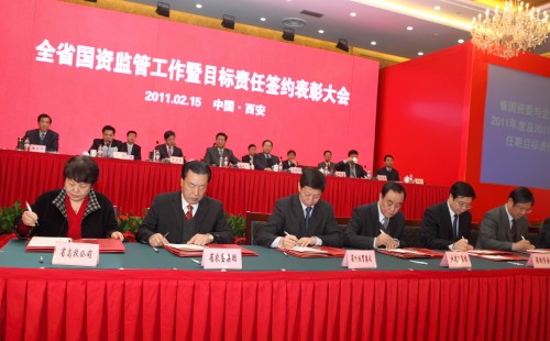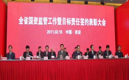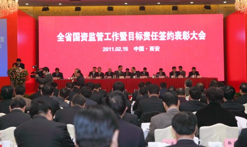 2月15日下午,2011年全省國(guó)資監(jiān)管工作暨目標(biāo)責(zé)任簽約會(huì)議在陜西省賓館舉行。省長(zhǎng)趙正永,省委常委、省委組織部部長(zhǎng)李錦斌,省人大常委會(huì)副主任白阿瑩,副省長(zhǎng)吳登昌等相關(guān)領(lǐng)導(dǎo)參會(huì)。“十一五”期間我省國(guó)資委監(jiān)管企業(yè)資產(chǎn)總額由1477億元增加到6969億元,增長(zhǎng)371%,所有者權(quán)益由339.9億元增加到2434億元,增長(zhǎng)616%,主要經(jīng)濟(jì)指標(biāo)步入全國(guó)先進(jìn)行列,位居西部前列。趙正永在講話中首先代表省委、省政府對(duì)“十一五”全省國(guó)資監(jiān)管和國(guó)有企業(yè)發(fā)展取得的成績(jī)給予充分肯定。他要求全省國(guó)資監(jiān)管系統(tǒng)和國(guó)有企業(yè)進(jìn)一步做強(qiáng)、做優(yōu)、做大國(guó)有資本。要不斷探索新國(guó)有企業(yè)參與民主建設(shè)的途徑和方式在承擔(dān)社會(huì)責(zé)任方面做出表率,努力實(shí)現(xiàn)企業(yè)與社會(huì)的共贏。