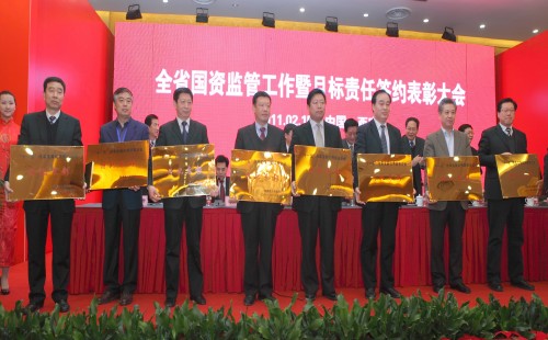 在省政府召開(kāi)的2011年全省國(guó)資監(jiān)管工作暨目標(biāo)責(zé)任簽約會(huì)上我集團(tuán)獲得《“十一五”改革發(fā)展優(yōu)秀企業(yè)》稱號(hào)
