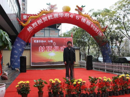 2010年10月26日,乾唐華府30層4#、5#住宅樓及地下車(chē)庫(kù)工程舉行了封頂儀式。集團(tuán)公司總會(huì)計(jì)師劉晏出席,集團(tuán)公司副總工程師、建設(shè)工程公司總經(jīng)理劉相杉,集團(tuán)辦公室主任梁平安以及集團(tuán)公司項(xiàng)目承建單位建設(shè)工程公司等人員到會(huì)參加。集團(tuán)公司總會(huì)計(jì)師劉晏在儀式上代表集團(tuán)公司作了發(fā)言講話。