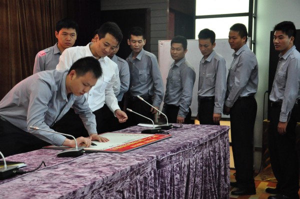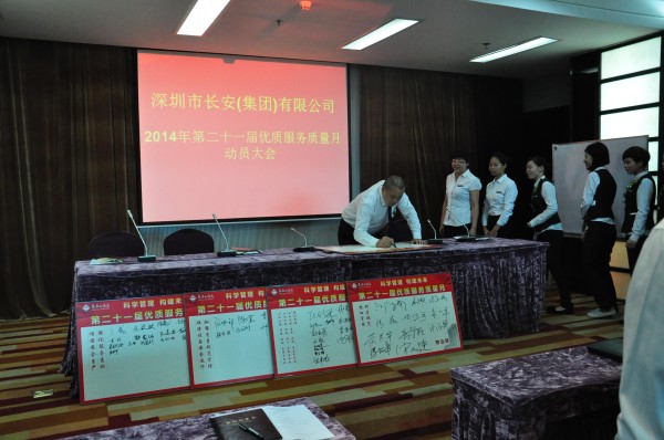 2014年9月12日,在歌聲、笑聲中,在各部經(jīng)理帶領(lǐng)部門員工簽訂優(yōu)質(zhì)服務(wù)承諾書的火熱氣氛和鏗鏘有力的宣誓口號(hào)聲中,長(zhǎng)安大酒店第二十一屆優(yōu)質(zhì)服務(wù)質(zhì)量月活動(dòng)隆重拉開帷幕。