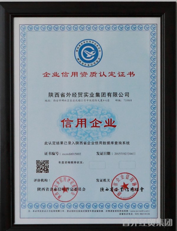 近日,經(jīng)陜西省企業(yè)信用評(píng)定委員會(huì)審核通過,由陜西省企業(yè)信用協(xié)會(huì)授予集團(tuán)公司信用企業(yè)稱號(hào),并頒發(fā)證書和牌匾。