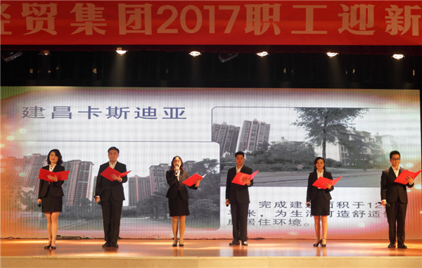 演出現(xiàn)場(chǎng)來(lái)自集團(tuán)本部、深圳長(zhǎng)安集團(tuán)、陜西省止園飯店、漢中市建筑工程總公司、陜西晗瑞實(shí)業(yè)有限公司、漢江混凝土有限責(zé)任公司、陜西外經(jīng)貿(mào)土地整理開(kāi)發(fā)工程有限公司、陜西海外投資發(fā)展有限公司、陜西易通人力資源公司、陜西外經(jīng)貿(mào)綜合服務(wù)有限公司的職工代表400余名干部員工歡聚一堂、恭賀新春。