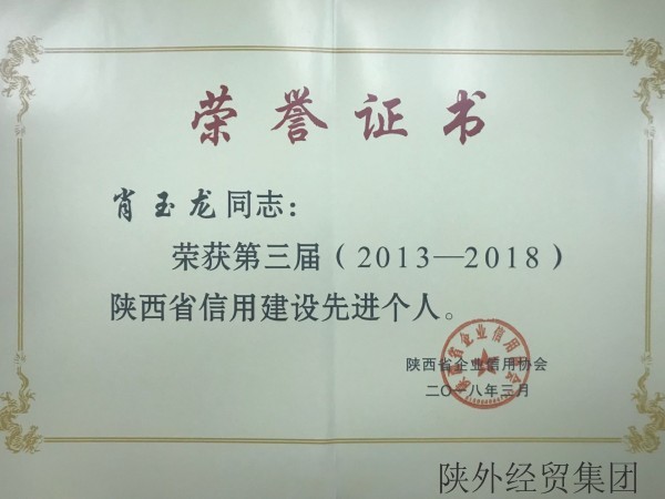 商以誠為本,業(yè)以信為基。3月28日,在華山國際酒店召開的陜西省企業(yè)信用協(xié)會年會暨2017年(第13屆)陜西省誠信獎(jiǎng)?lì)C獎(jiǎng)典禮上,集團(tuán)公司榮獲信用企業(yè)“第三屆優(yōu)秀會員單位”,同時(shí)集團(tuán)公司黨委書記、董事長肖玉龍榮獲“第三屆陜西省信用建設(shè)先進(jìn)個(gè)人”,規(guī)劃發(fā)展部萬曉攀榮獲“第三屆陜西省信用管理先進(jìn)個(gè)人”稱號。