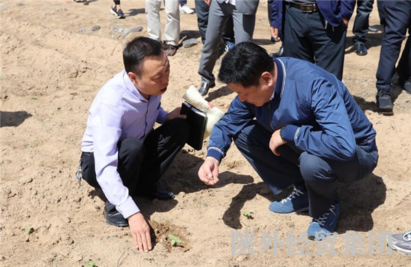 2018年5月22日,集團董事長肖玉龍蒞臨外經(jīng)貿(mào)土地整理開發(fā)工程有限公司榆林分公司進行指導工作,在土地公司總經(jīng)理唐李、榆林分公司經(jīng)理羅志中的陪同下到鹽堿地試驗田進行視察。隨行的還有集團宣傳部長張斌,榆陽區(qū)國土局局長王開富、土地整理中心主任王波,明杰農(nóng)業(yè)董事長羅小虎等。