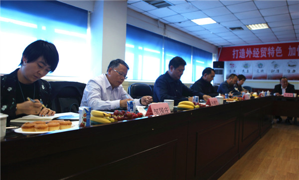 10月10日下午,浙江精功集團(tuán)總裁孫建江一行6人到我集團(tuán)考察。陜外經(jīng)貿(mào)集團(tuán)黨委書記、董事長(zhǎng)肖玉龍,黨委副書記、總經(jīng)理惠宏軍,集團(tuán)公司相關(guān)領(lǐng)導(dǎo)和各職能部門負(fù)責(zé)人出席座談會(huì)。